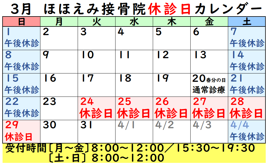 3月のお休みのお知らせです💌